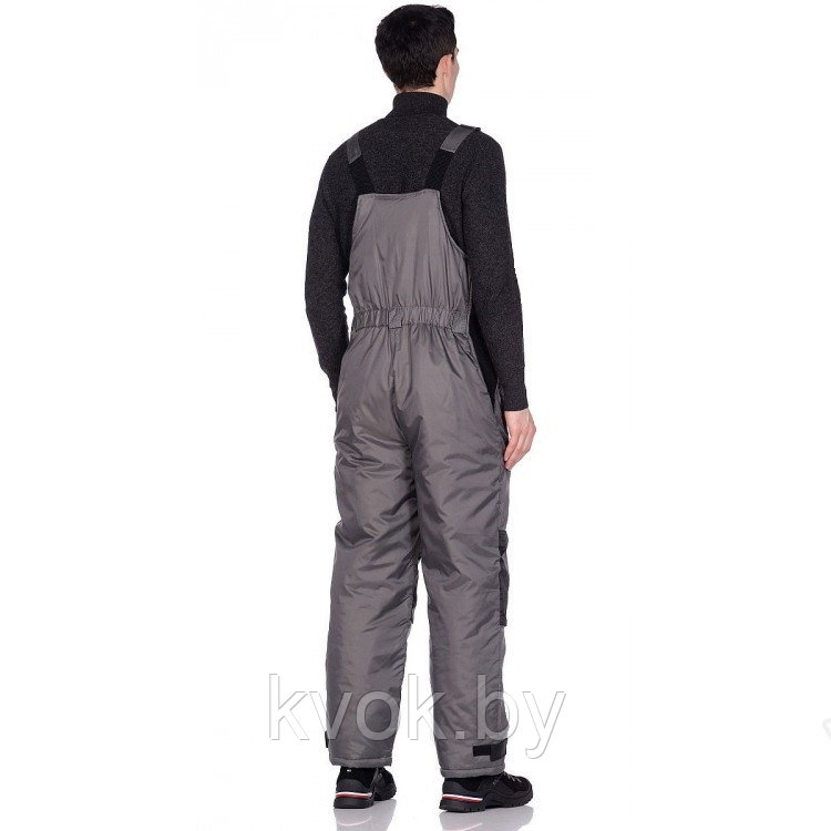 На полукомбинезоне три внешних кармана, колени снабжены карманами для защитных вкладышей, эластичная боковая вставка, двухзамковая молния, регулировка ширины низа брюк на полукомбинезоне (молния + Velcro).
